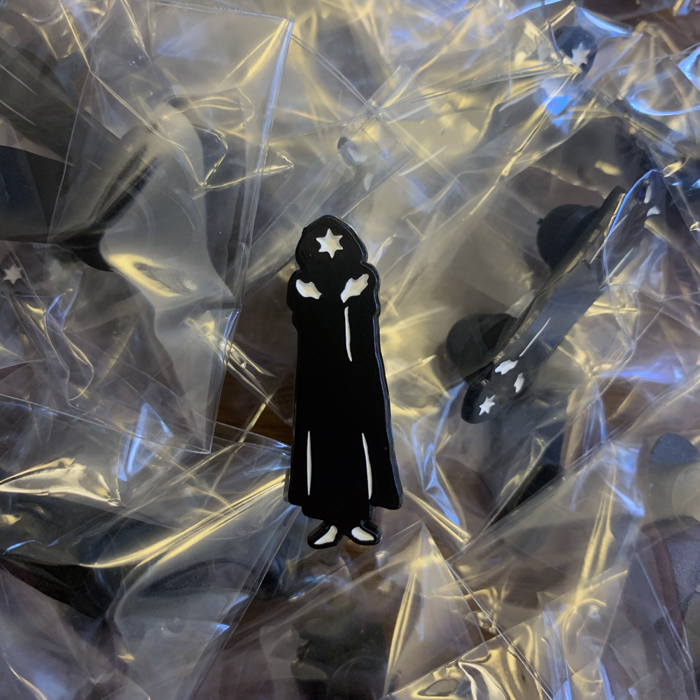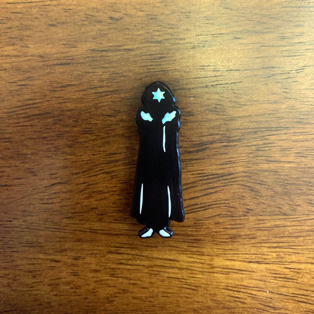 1.5" tall soft enamel pin with two rubber clutches for security and stability.